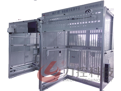 本系統是由鋼結構框架和木板搭建而成的二層建筑平臺,分別模擬一棟建筑的首層機房、二層住戶、首層樓道、二層樓、垂豎井和建筑周邊。房間提供正反側墻和頂墻的安裝范圍,同時還提供房間大門,可在上面安裝電插鎖、電磁鎖、門磁和閉門器等器件,并具有安裝模擬電梯功能。
